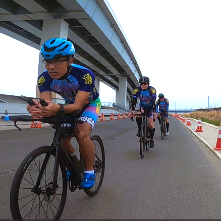 これだけ大勢の人数でバイク練習となると事故の発生も心配となりますが、今回江戸川トライアスロン連合の大野コーチが、事故防止のためのブリーフィング【これ大事!】からチーム分け、ペースと見事な配分で、危ない場面も特になく練習会を終える事ができました。